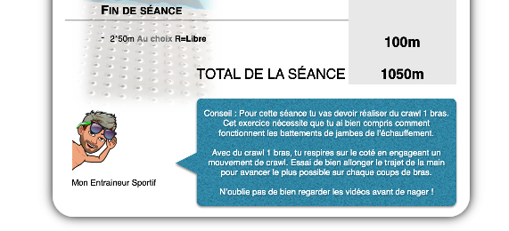 Chaque séance est composée d’un Titre. Il annonce la couleur de l’entraînement et dépend de votre Programme et des objectifs fixés au préalable.